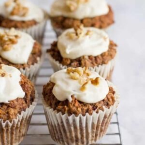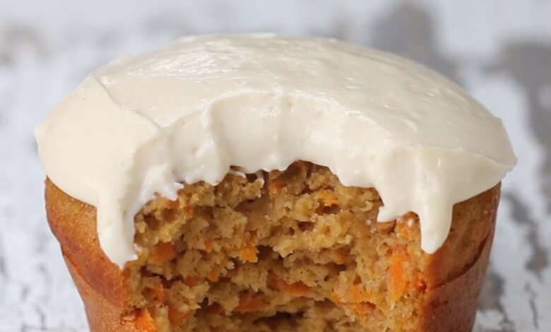 تحتوي كعكة الجزر على الكعك في وصفة الإفطار الصحية هذه. يضيف دقيق المعجنات المصنوع من القمح الكامل إلى جانب الكثير من الجزر والجوز المحمص الألياف بينما يساعد صلصة التفاح على رطوبة كعكات الفطائر ويساعد على تقليل السكر.